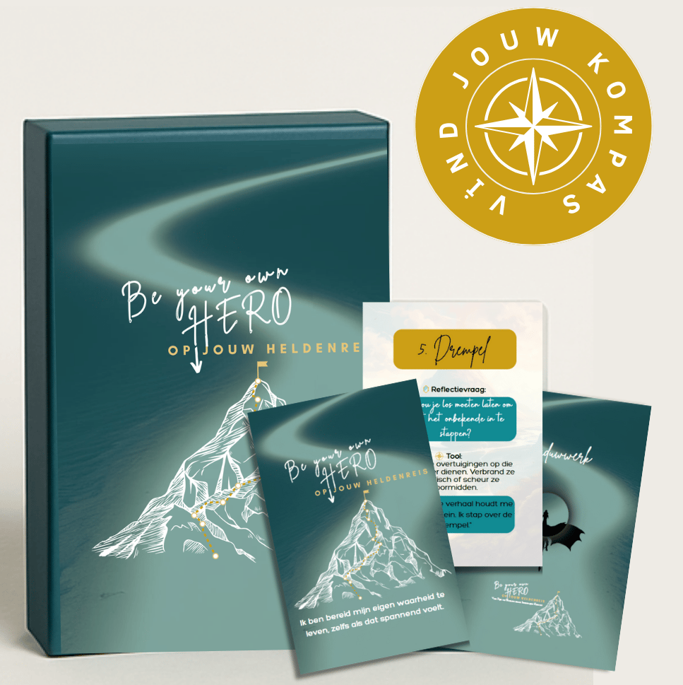 Be Your Own Hero is een uniek kaartendeck met 80 inspirerende kaarten, ontworpen om je te begeleiden op jouw persoonlijke Heldenreis
